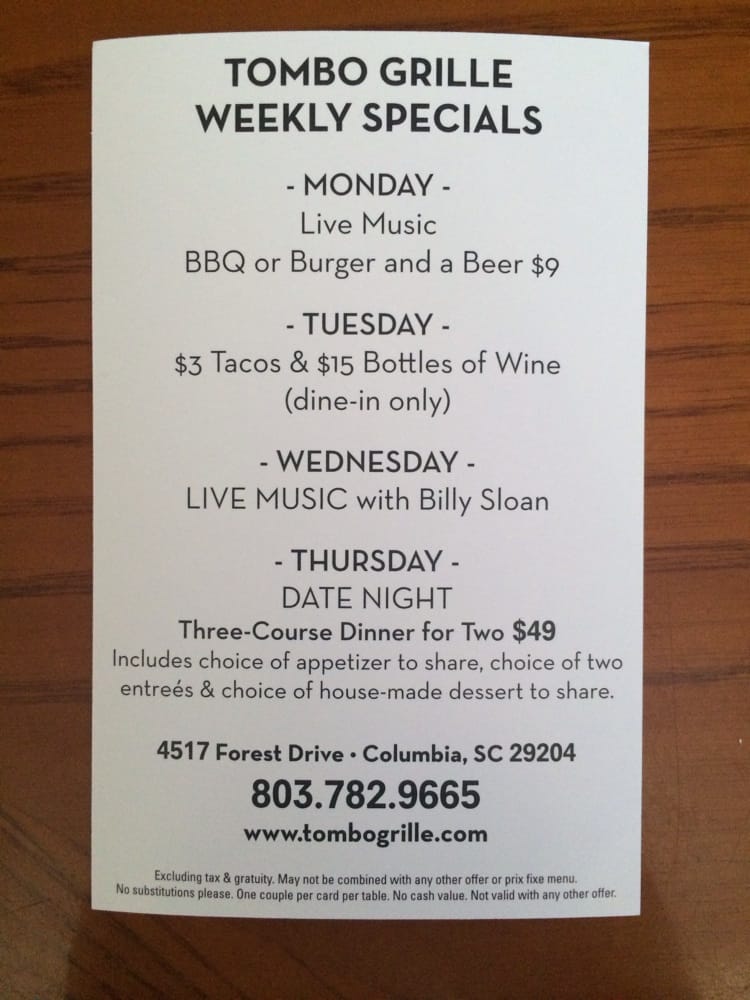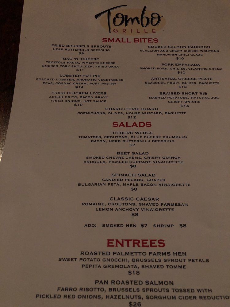 Welcome to Tombo Grille, where New American cuisine takes center stage in an intimate and classy atmosphere. This charming venue, located at 4517 Forest Dr, Columbia, SC, promises a delightful dining experience, whether you’re indulging in romantic dinners or hosting groups. The diverse menu features small bites like Fried Brussels Sprouts and Crab Cakes that entice with layers of flavor.